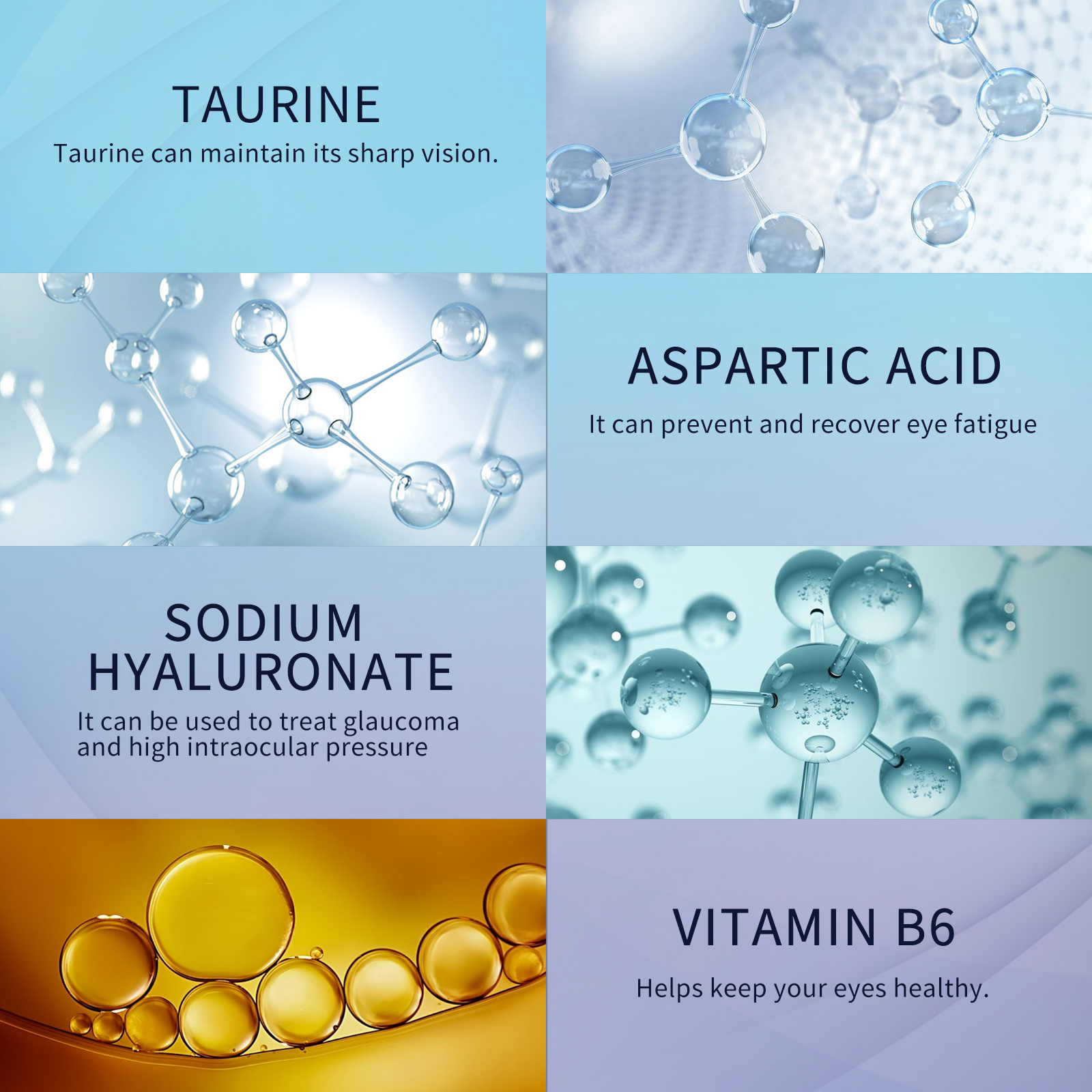 Our eye drops contain taurine, aspartic acid, and sodium vitrate.It temporarily narrows the pupil and helps improve the eye`s ability to focus up close while maintaining clear vision at a distance.It`s simple to use: wash your hands.Tilt your head back and look at the ceiling.Use your index finger to pull down your lower eyelid to form a pocket.Gently squeeze a drop into the pocket.Do not let the top of the bottle touch your eyes, fingers or anywhere else.Gently close your eyes and press gently on the inner corners of your eyes.Carefully draw away any excess fluid.Deeply conditioning and deeply soothing, quickly dissolving the source of discomfort.