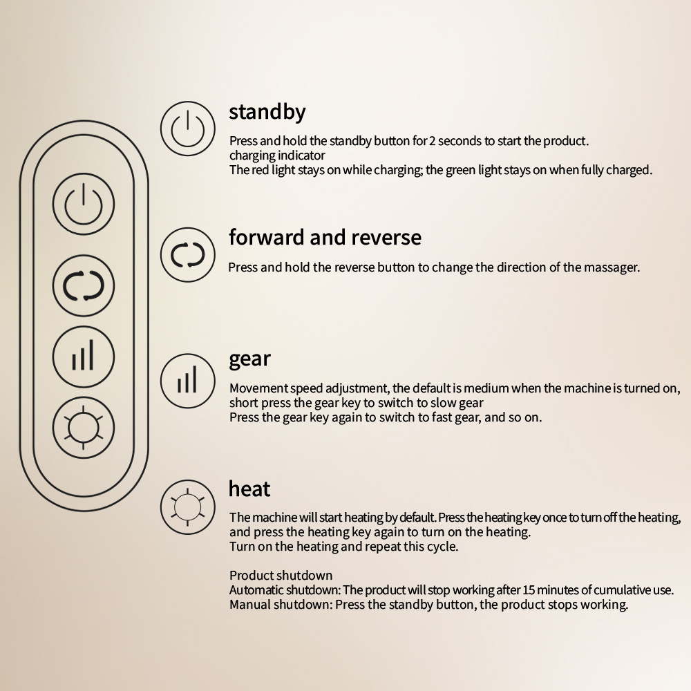 【Three Heat Levels, Constant Comfort】The constant temperature heat function is enabled by default and can be freely turned on or off. With three adjustable temperature levels (inferred from the gear key), it deeply penetrates to soothe soreness, providing warm care on cold days.